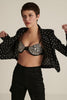 Top en alfaiataria de algodón, bordado a mano con pedraria.